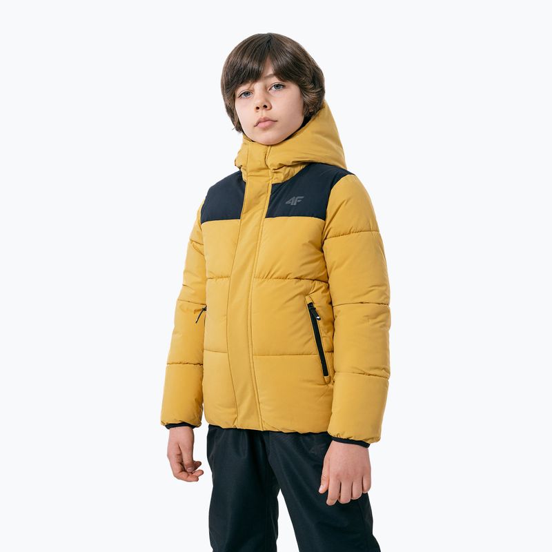 Vaikiška pūkinė striukė 4F JKUMP004 šviesiai ruda (HJZ22-JKUMP004)