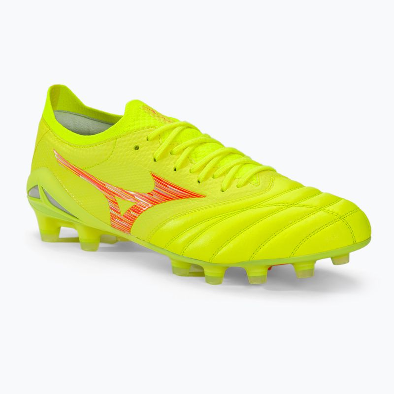 Mizuno Morelia Neo IV Β Japan Md safety yellow/fiery coral 2/ safety yellow futbolo bateliai yra ypatingas modelis, sukurtas profesionaliems futbolininkams, ieškantiems nepriekaištingos kokybės ir neprilygstamos našumo aikštėje. Pagaminti iš aukščiausios kokybės natūralios odos, jie užtikrina puikų pritaikymą ir komfortą žaidžiant ant natūralios žolės. Dėl pažangių technologijų, šie bateliai siūlo lengvumą, kas reiškia manevringumą ir greitumą aikštėje.