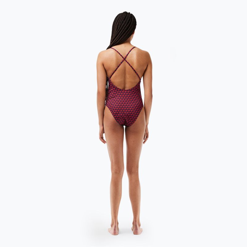 Moteriškas vientisas maudymosi kostiumėlis Lacoste MF7264 penumbra / alizarin / red