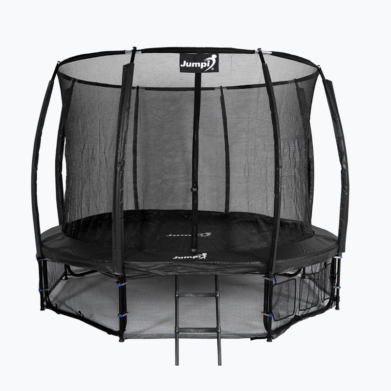 Trampolinas Jumpi Maxy Comfort Plus yra aprūpinta tvirta apsaugine tinklu, konstrukciniais stulpais, padengtais storu putplasčio sluoksniu, grūdintomis spyruoklėmis, uždaromu įėjimu ir specialiai sustiprinta konstrukcija. Trampolina pasižymi dideliu stabilumu, dėka stulpų ir kojų sujungimo.