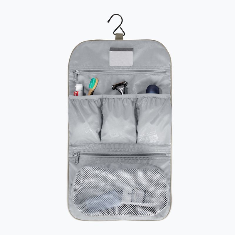 Integruotas specialus kabliukas leis patogiai ir praktiškai pakabinti kosmetinę ant pakabos, pavyzdžiui, šalia vonios veidrodžio, ir greitai pasiekti joje esančias kosmetikos priemones.