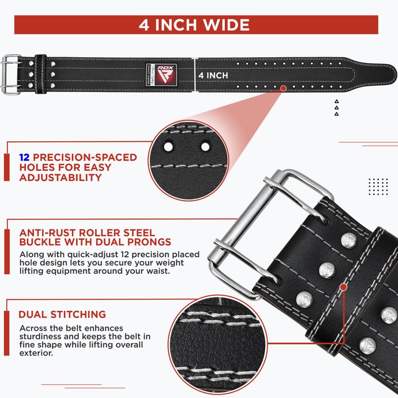 RDX RD1 svarų kėlimui skirtas diržas stabilizuoja liemenį intensyvių jėgos treniruočių metu. Natūralios odos konstrukcija bei sagtis ir velcro užsegimas užtikrina patikimą laikymąsi ir ilgaamžiškumą.