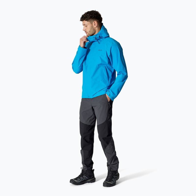 Vyriška lietaus striukė Rab Downpour maya blue – modelis intensyviam naudojimui.