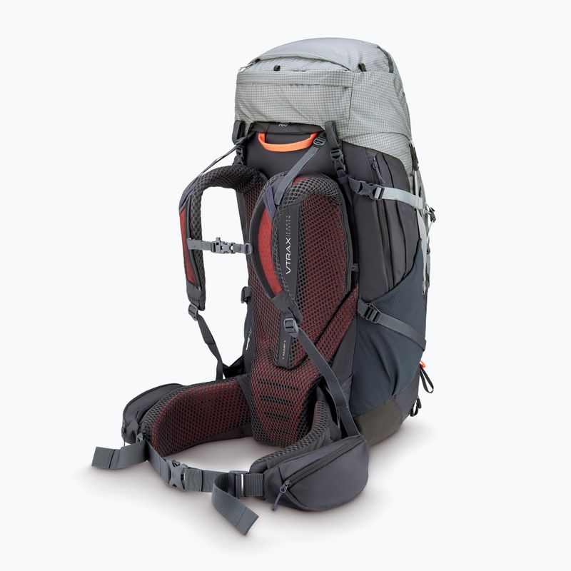 Trekkinis kuprine Rab Hyperon 65 l tamsiai šviesiai pilkas/anglies yra įrengta pažangi V-TRAX™ nešimo sistema, kuri užtikrina optimalią pritaikymo ir dėvėjimo komfortą. Ši sistema leidžia lengvai reguliuoti aukštį, todėl kuprinė gali būti individualiai pritaikyta vartotojo figūrai. Dėl to kuprinės svoris tolygiai pasiskirsto, taip sumažinant nuovargį ilgų žygių metu.