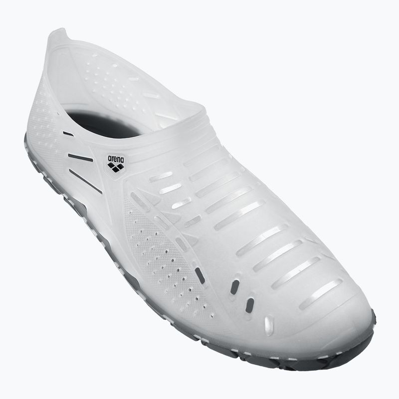 Vandens batai Arena Sharm clear yra ideali išeitis žmonėms, aktyviai praleidžiantiems laiką prie vandens. Pagaminti iš aukštos kokybės poli(vinilchlorido), jie puikiai apsaugo kojas nuo aštrių daiktų ir nelygumų. Įsispiriamas dizainas palengvina greitą užsidėjimą ir nusivilkimą, kas ypač naudinga intensyvaus naudojimo metu paplūdimyje ar baseine.