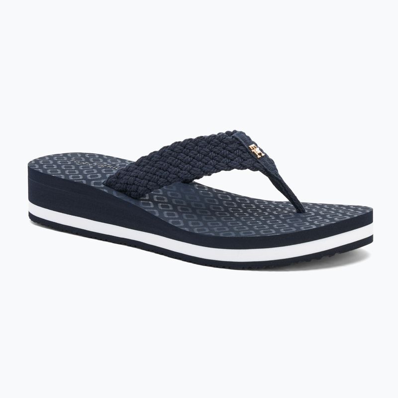 Moteriškos šlepetės per pirštą Tommy Hilfiger Crochet Mid Beach Sandal space blue (FW0FW08737DW6)
