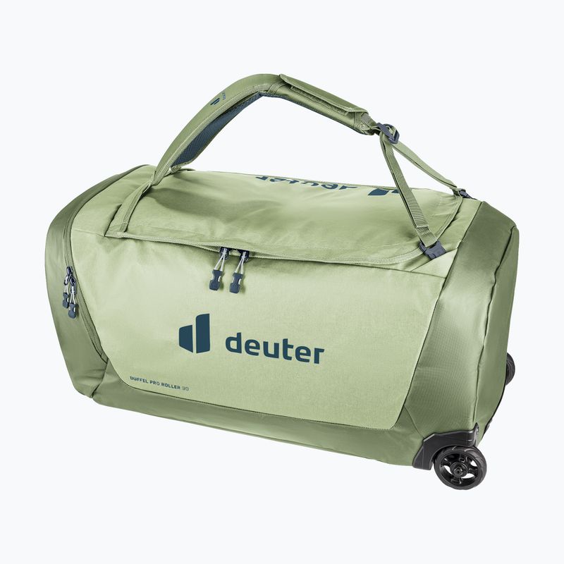 Kelioninė deuter Duffel Pro Roller 90 l mineral/grove išsiskiria galimybe nešioti ją kaip kuprinę, kas padidina komfortą transportuojant. Sustiprintas dugnas suteikia papildomą apsaugą nuo nusidėvėjimo ir stabilumą statant krepšį ant įvairių paviršių. Dėl užtrauktuko, kuris yra pagrindinis užsegimas, prieiga prie turinio yra greita ir paprasta.