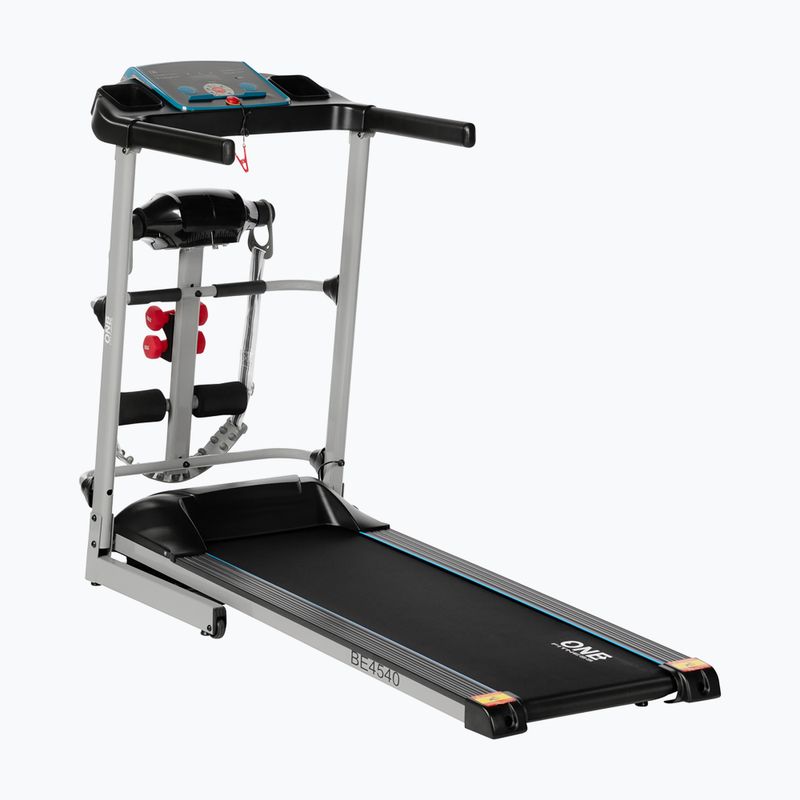 Bėgimo takelis HMS BE4540 One tai kompaktiškas įrenginys namų treniruotėms. Jis aprūpintas neslystančia juosta, automatiškai reguliuojamu greičiu, amortizacijos sistema bei įmontuotais garsiakalbiais su audio prievadu. Rinkinyje yra masažuoklis, padedantis atsigauti raumenims.