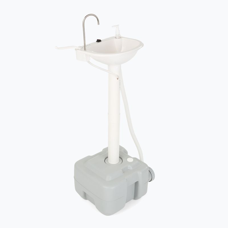 Produktas yra aprūpintas banguotu laidu, kuris nukreipia nuotekas tiesiai į talpą purvinam vandeniui. Dėl to palapinės aplinka išlieka sausa ir be purvo, kuris susidaro plaunant rankas.
