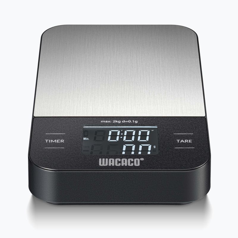 Kavos svorio WACACO Exagram – kompaktiška, tiksliai elektroninė svorio matavimo priemonė espresso ir filtro kavai, idealiai tinkanti namų naudojimui ir kelionėms, užtikrinanti greitus ir tikslius matavimus, lengvą naudojimą ir patogų pupelių bei ekstrakto svėrimą.